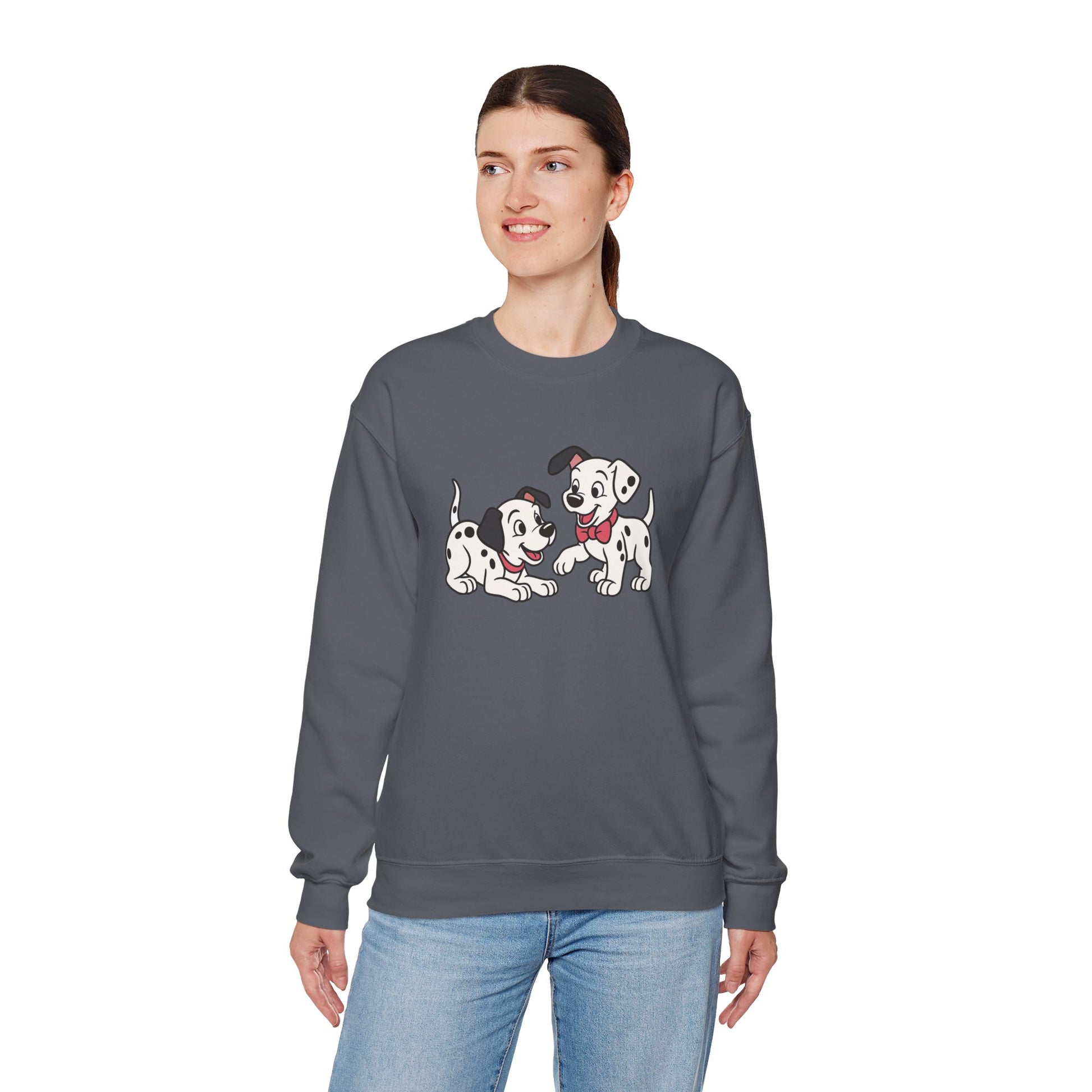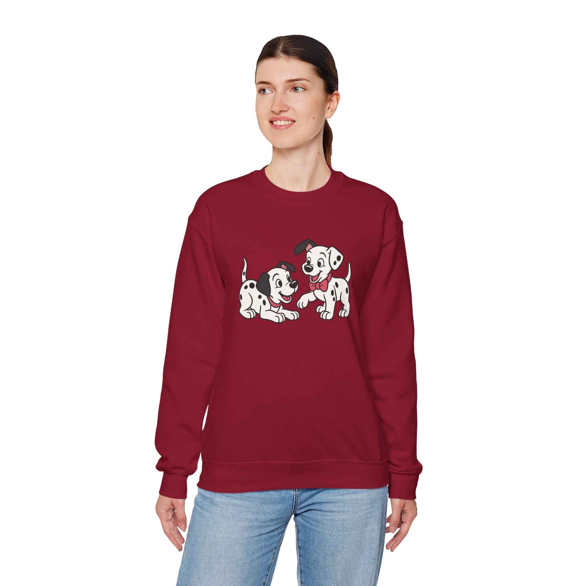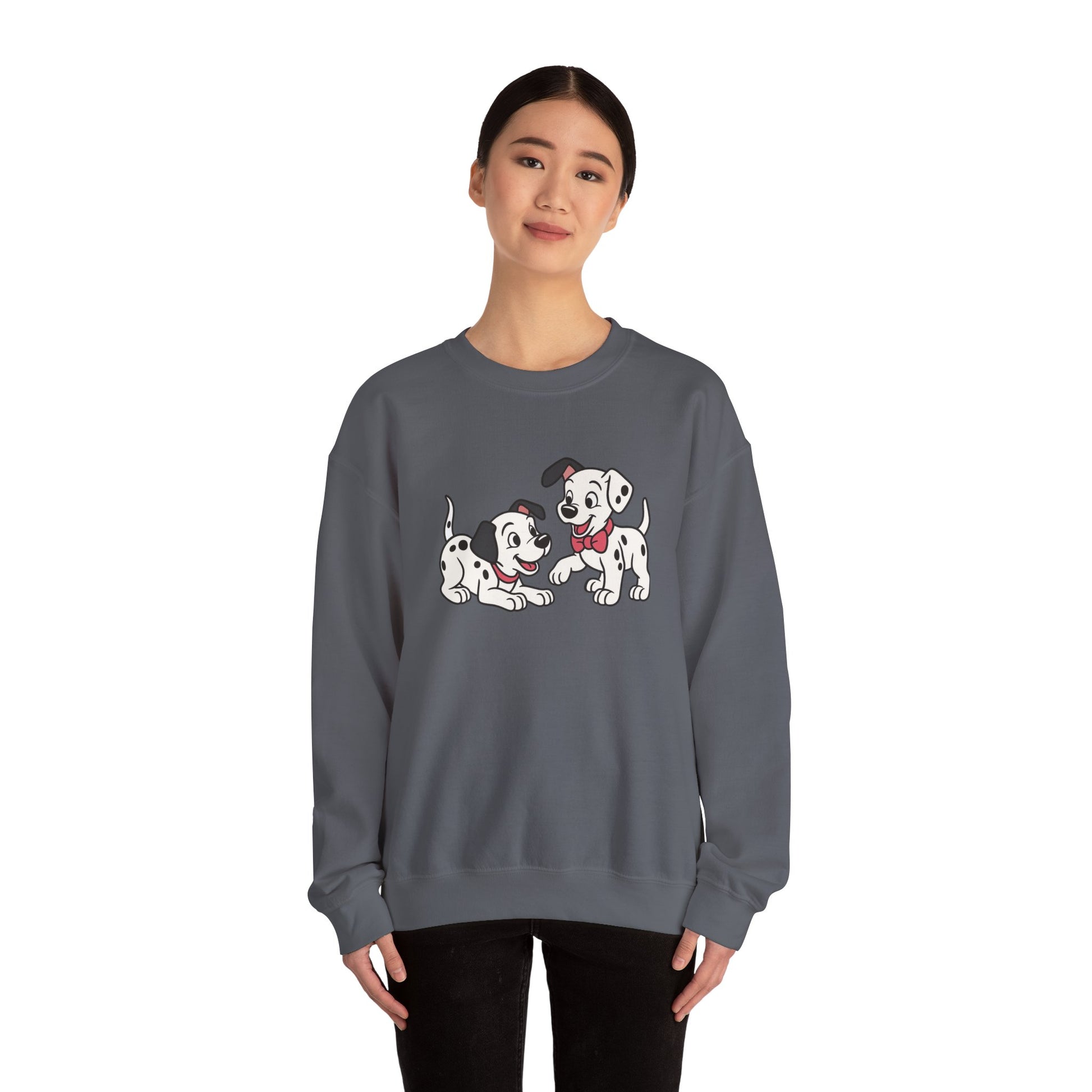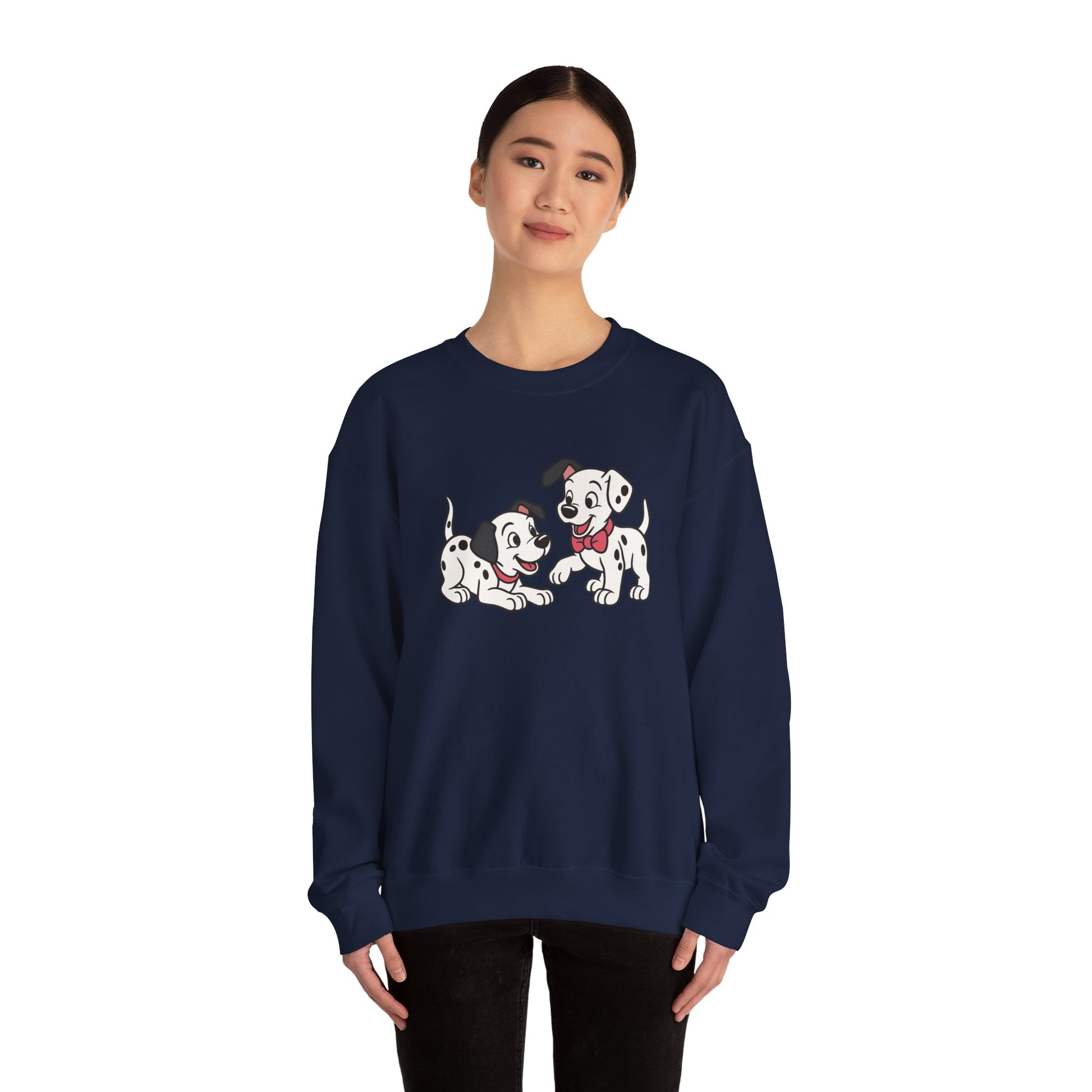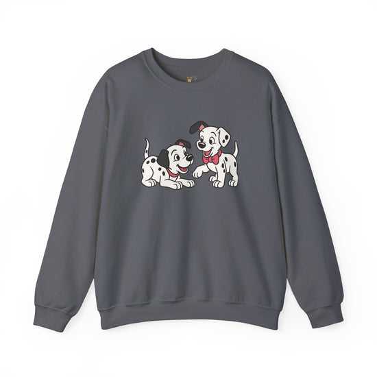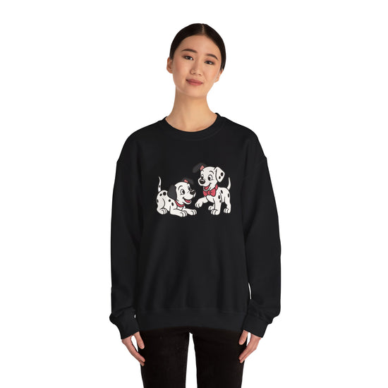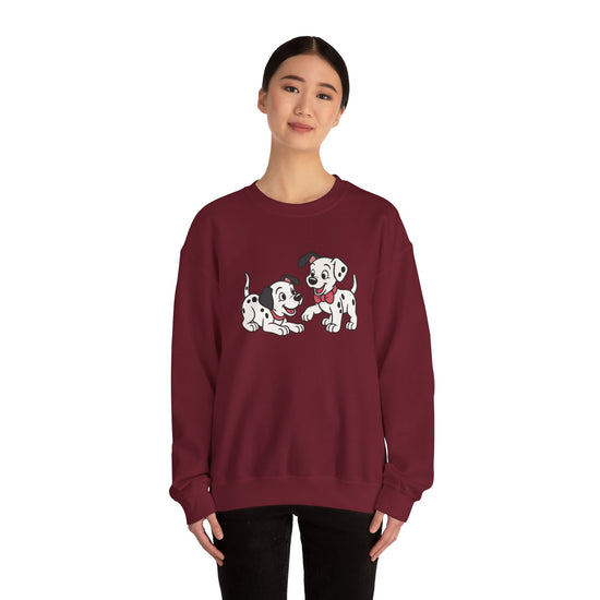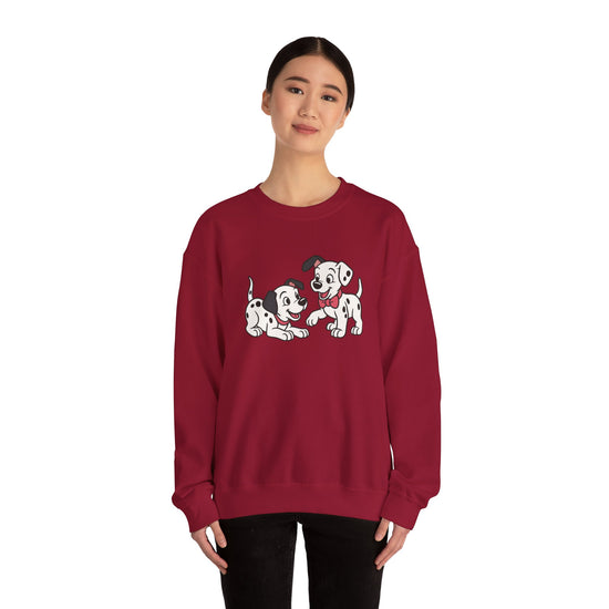 2 out of 101 puppies on one crewneck.