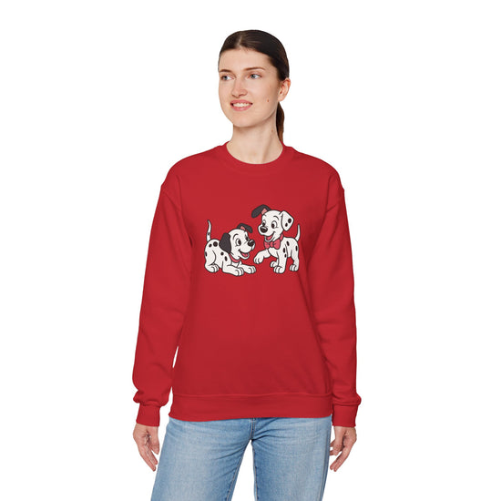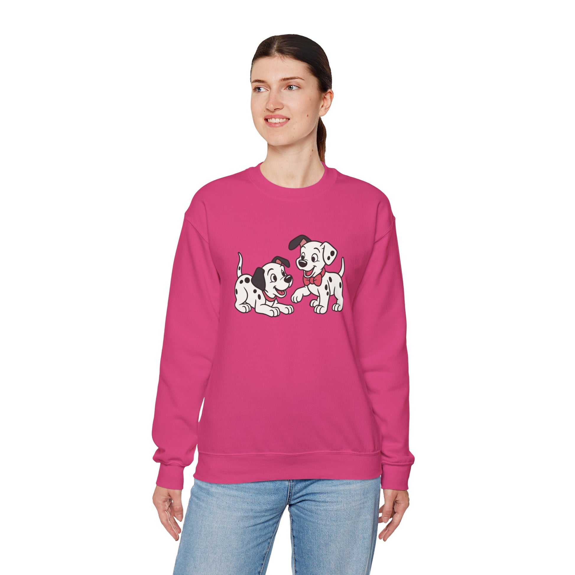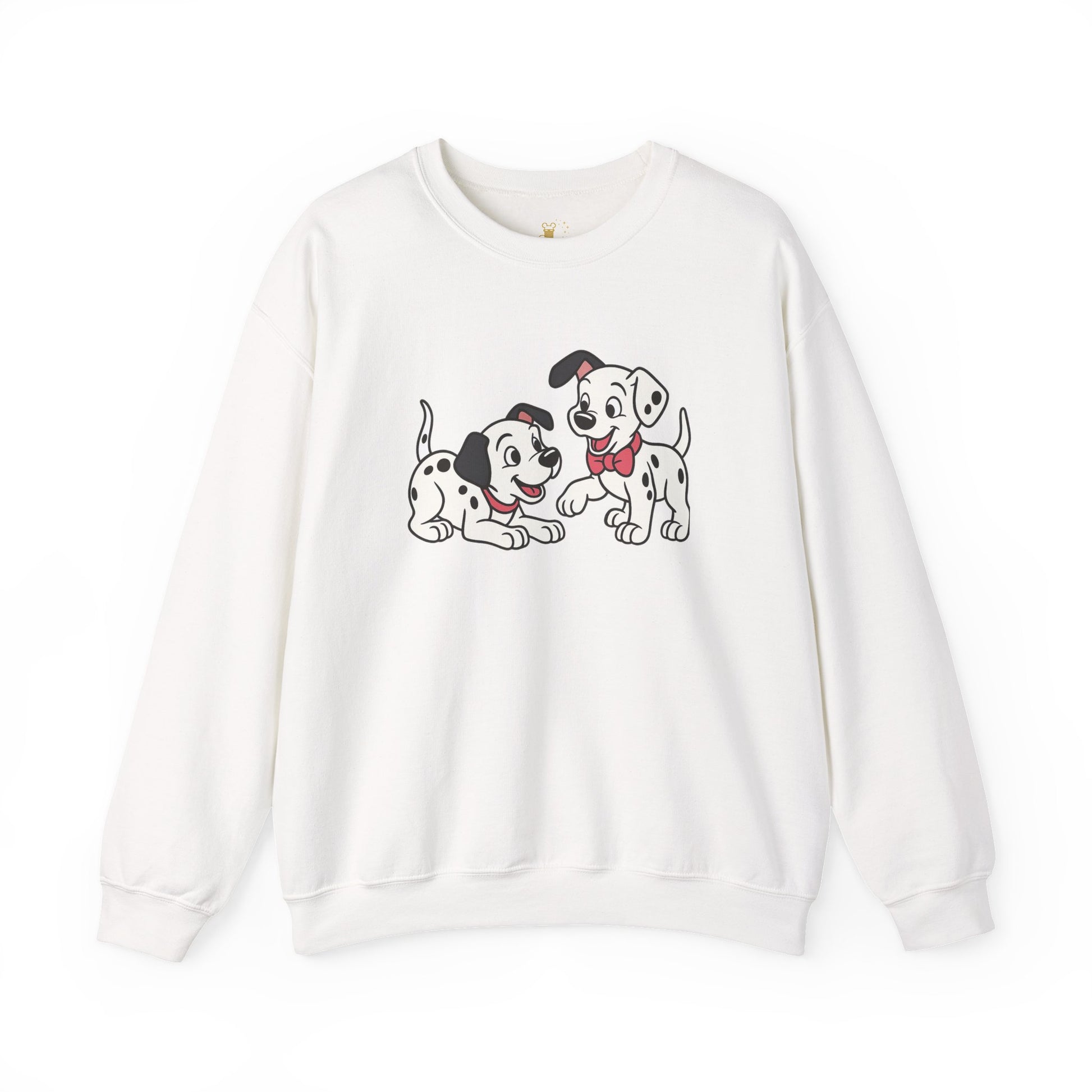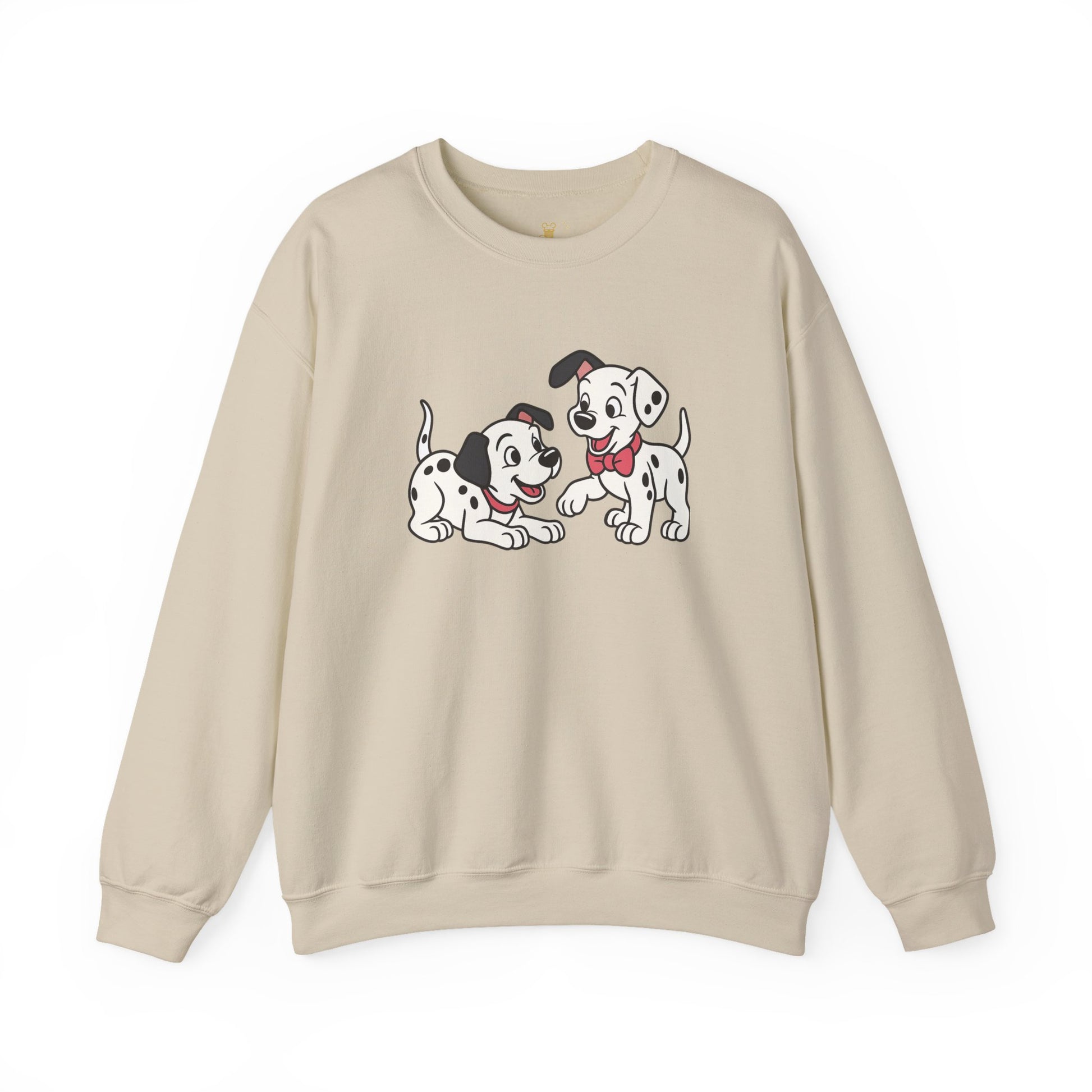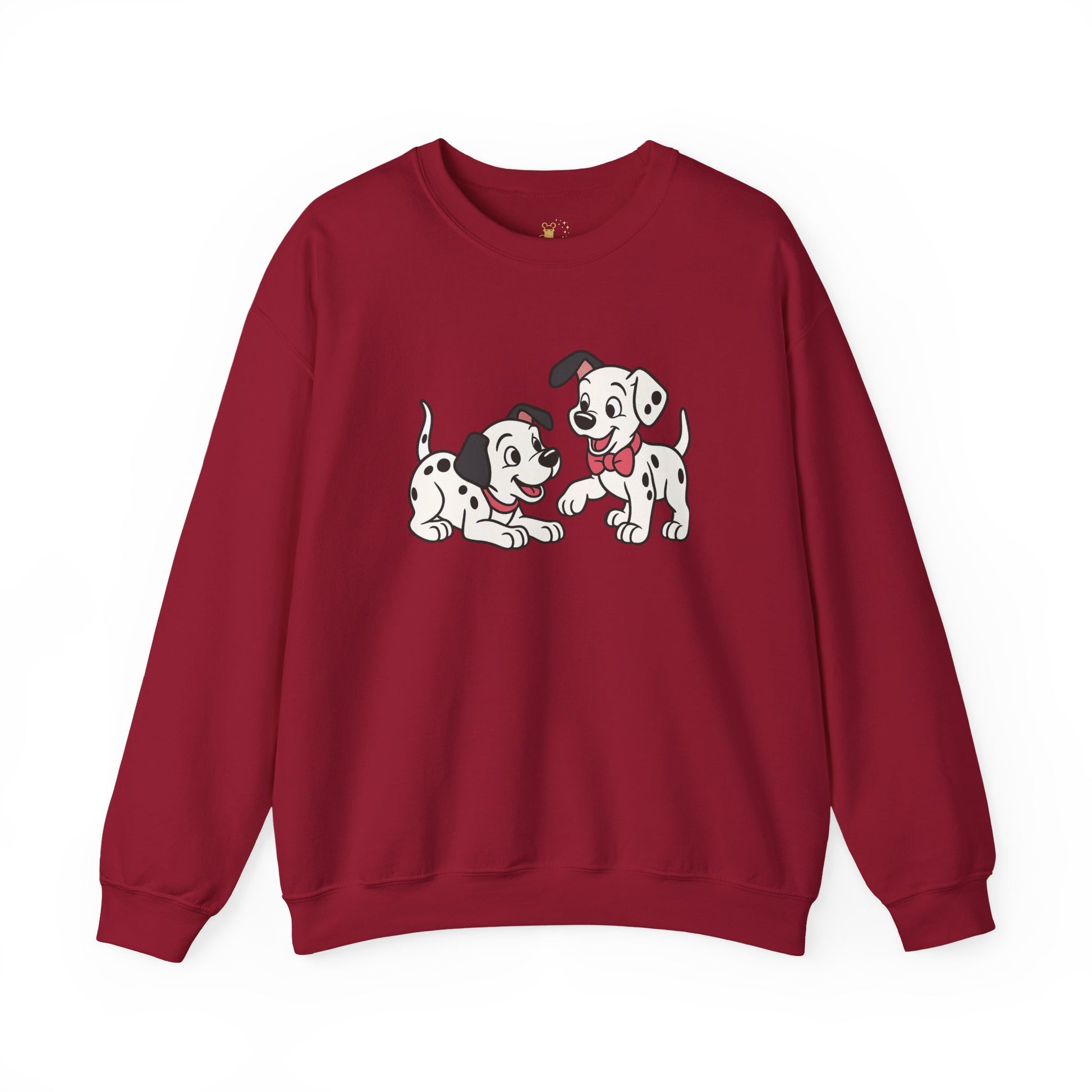 2 out of 101 puppies on one crewneck.